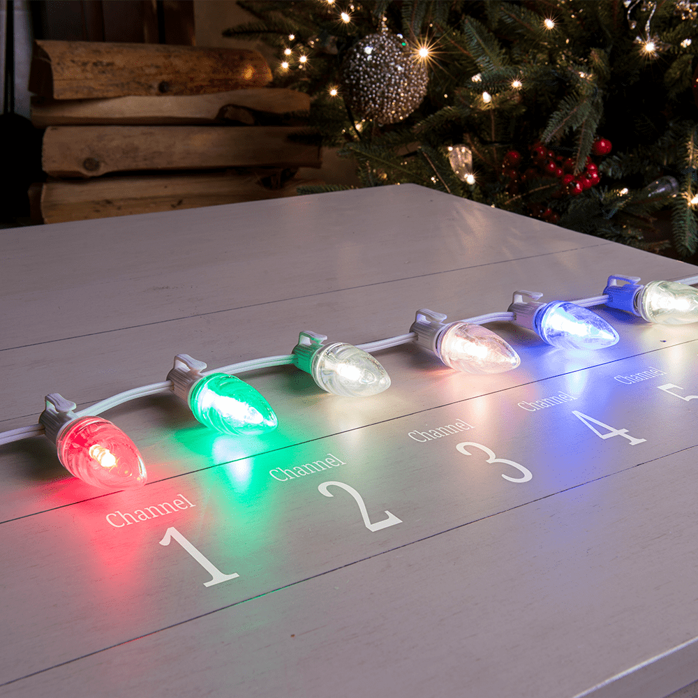 Your bulbs come pre-programmed with 6 channels. When installing your bulbs, start with channel 1 and continue in order to channel 6. Continue this process until your light strand is complete. Refer to the colored rings at the base of the bulb to determine which channel is which, based on the color of the ring.