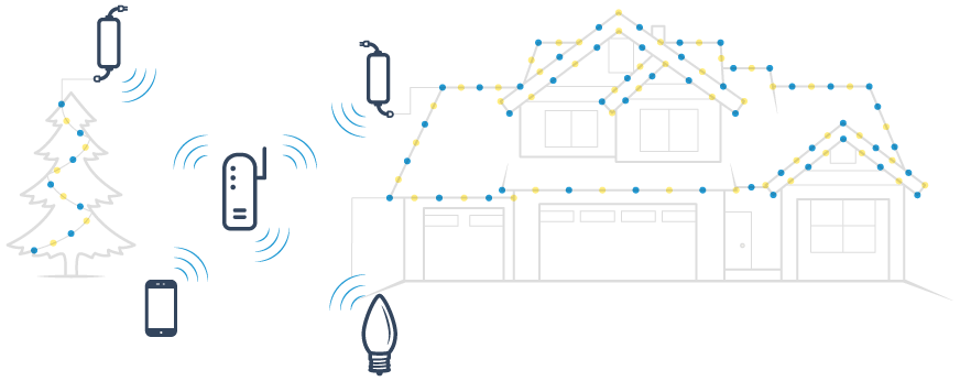 Place a wireless switch at the beginning of each line of lights to control the power on/off signals from the controller. Choose to have your lights turn on at dusk and off at dawn using photocell, or set specific on/off times using the app Buy Now ›